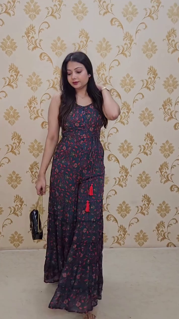 Turn heads with this black floral sleeveless jumpsuit featuring a flattering fit, red print, and tassel tie-up waist—perfect for brunch dates, evening parties, and stylish casual wear.