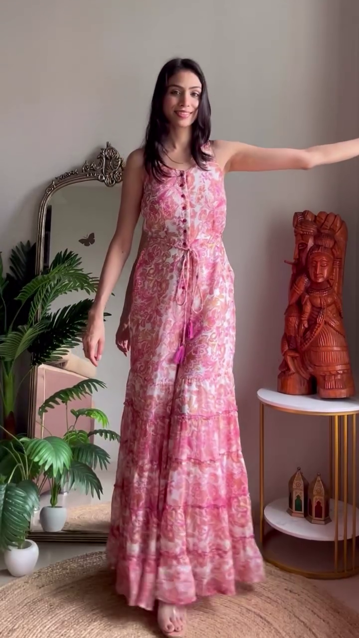 This pink floral maxi dress is perfect for women seeking stylish yet comfortable summer dresses, printed maxi dresses for casual wear, or boho-inspired outfits. Its versatile design makes it suitable for beach holidays, garden parties, college wear, or relaxed office days when styled appropriately.