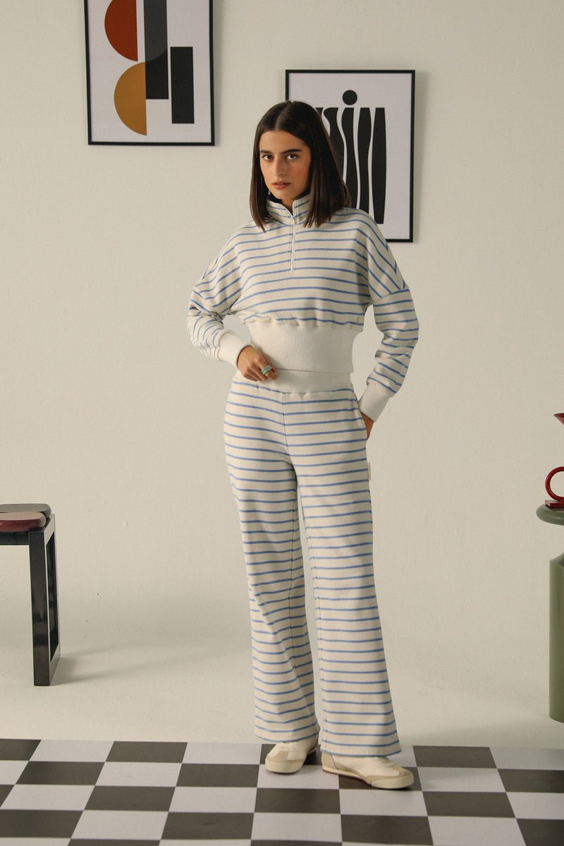 Indulge in comfort and style with our Cloud Cuddle Co-ords Set, designed for those who crave coziness without sacrificing fashion. Crafted from soft, yarn-dyed stripe fleece, this set includes a trendy cropped top and matching straight-leg pants, creating a chic, coordinated look perfect for any occasion. Whether you’re at home, out for coffee, or meeting friends, this set keeps you looking effortlessly stylish while ensuring you feel cozy and relaxed.