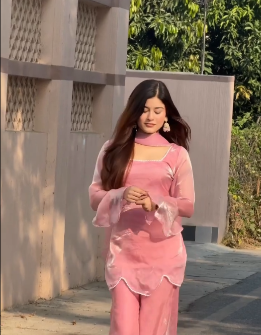 Crafted from soft, premium velvet-finish fabric, this pink kurti set offers a subtle sheen that enhances its luxurious appeal. The fabric drapes gracefully on the body, providing both comfort and sophistication. Its smooth texture feels gentle on the skin, making it suitable for long hours of wear during festivals, family gatherings, or evening events.