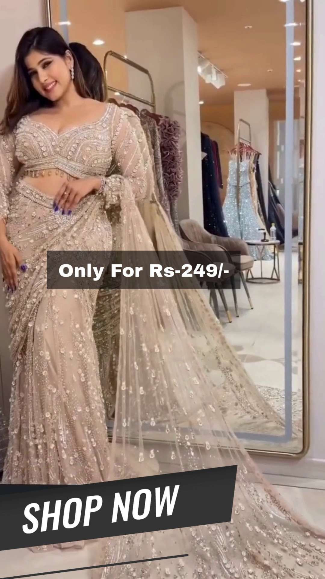 Upgrade your ethnic collection with this beautiful embellished net saree, designed to make you feel confident, stylish, and unforgettable. Perfect for gifting or personal wear, it’s a showstopper that proves you don’t need to spend a fortune to look absolutely stunning. Shop now and redefine elegance with this irresistible partywear saree.