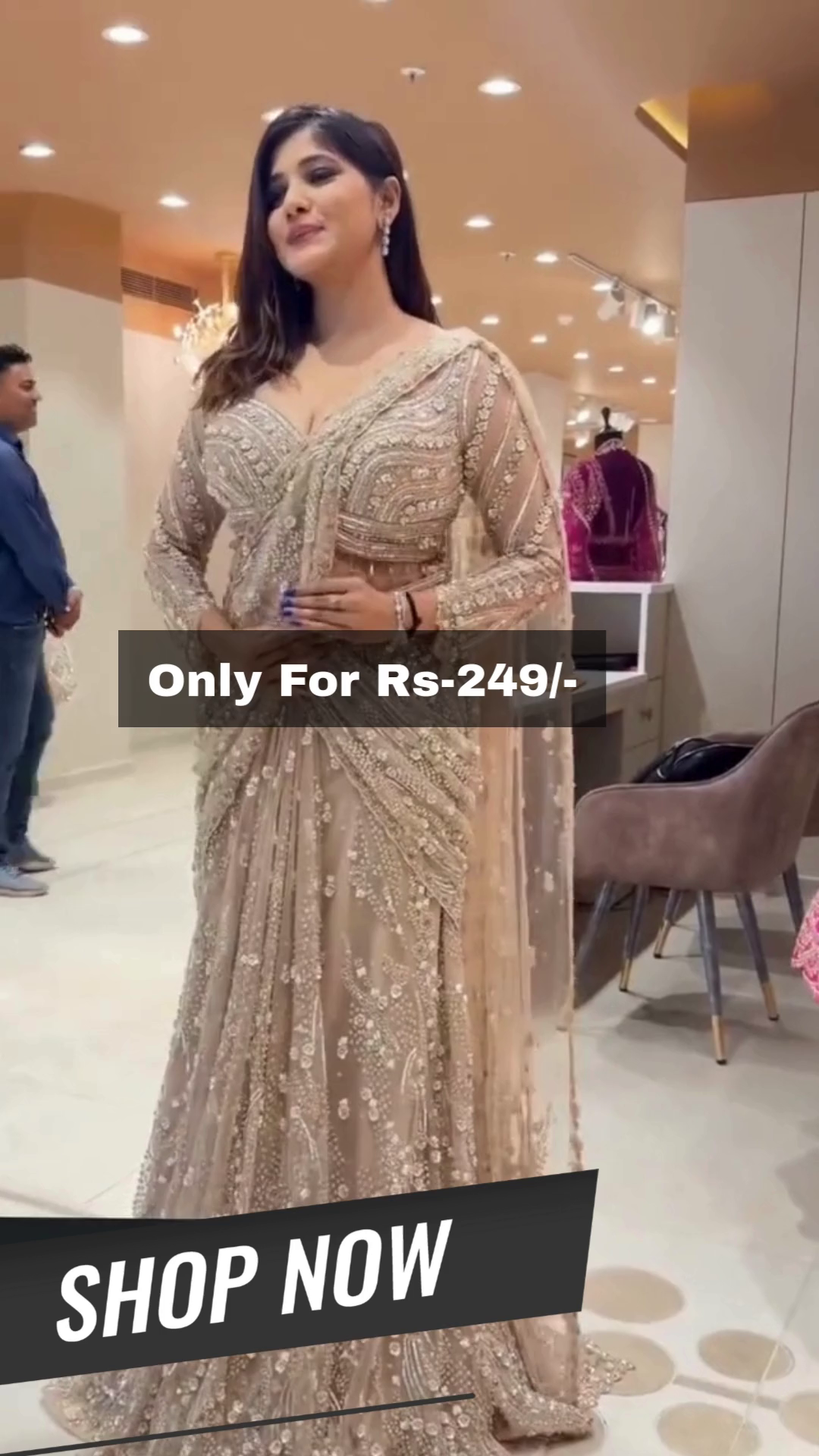 Step into timeless glamour with this Elegant Champagne Net Embellished Saree, a stunning fusion of luxury aesthetics and everyday affordability. Designed for modern women who love to make a statement, this saree delivers a high-end designer look at a surprisingly pocket-friendly price. Whether you’re dressing up for a wedding, festive celebration, cocktail party, or special evening event, this saree ensures you shine with effortless grace.
