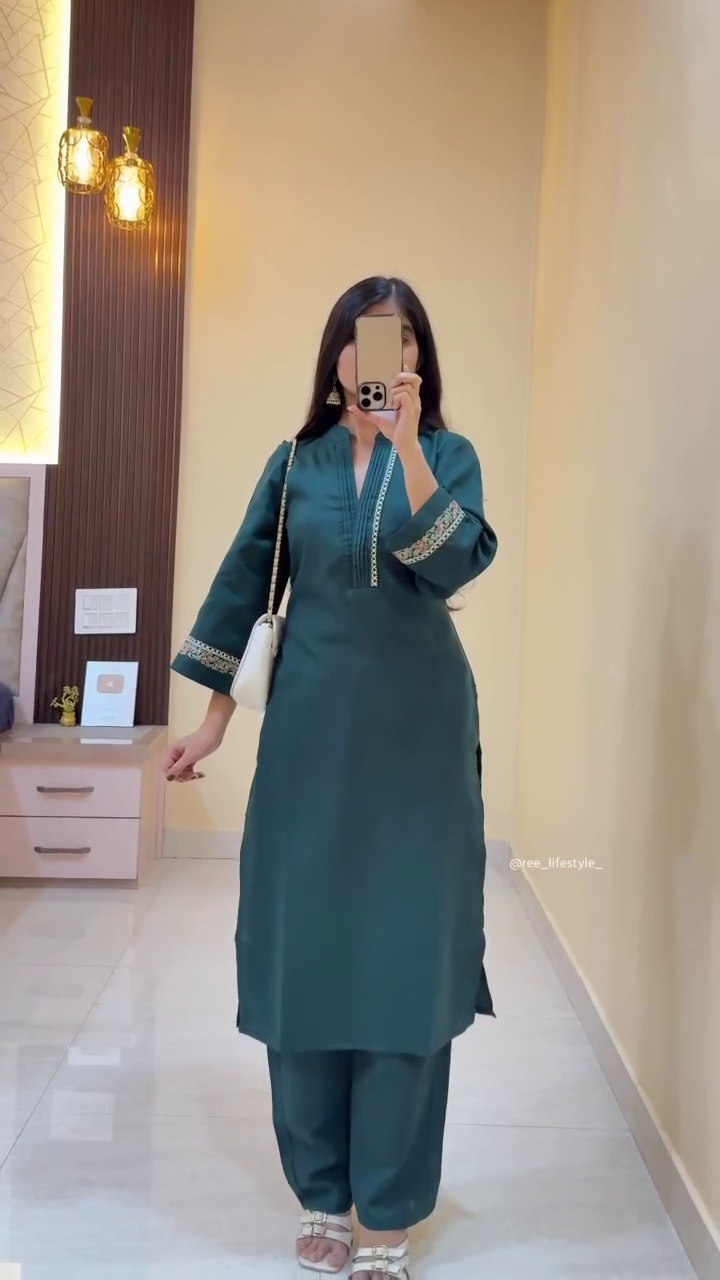 Paired with matching wide-leg pants, this set ensures a balanced and polished look. The breathable fabric keeps you comfortable throughout the day, making it a perfect choice for warmer seasons. Its clean and minimal design allows for versatile styling with statement earrings, traditional footwear, or a chic handbag.