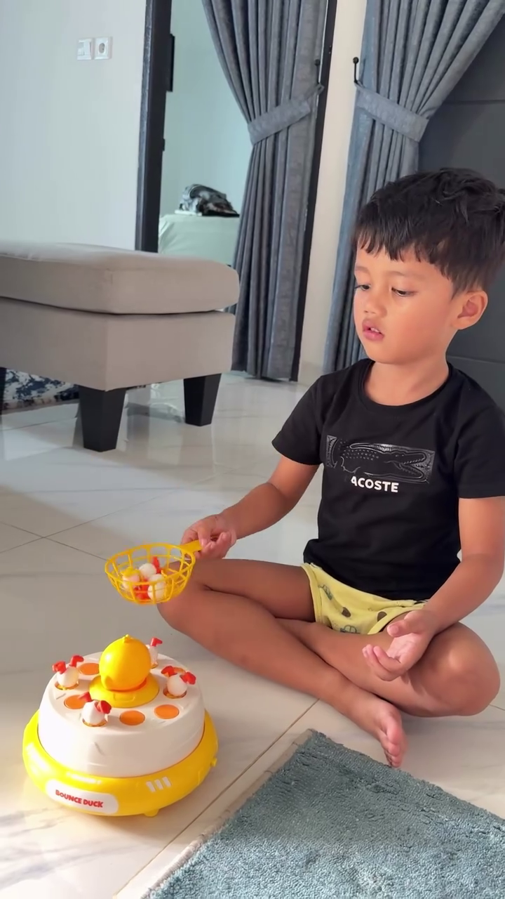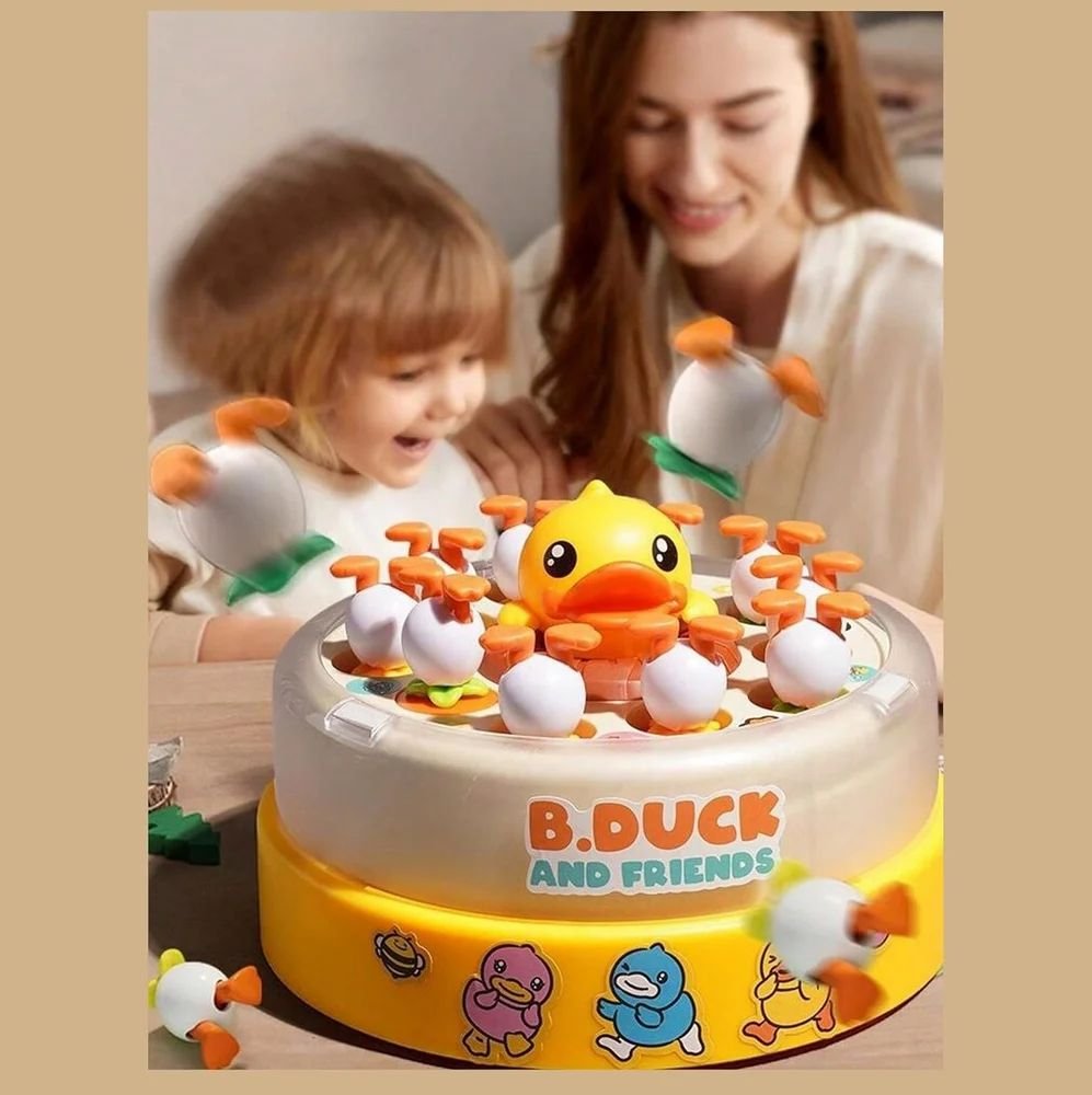 This image features a young child enjoying an interactive duck-catching game toy, designed to provide fun, engagement, and skill development for kids. The toy includes a circular base with small moving duck figures and a central duck element, creating a dynamic play experience.