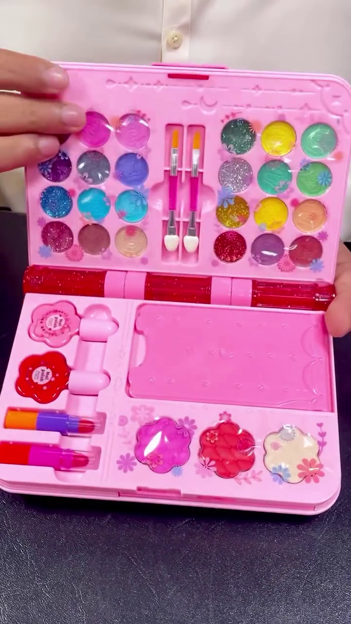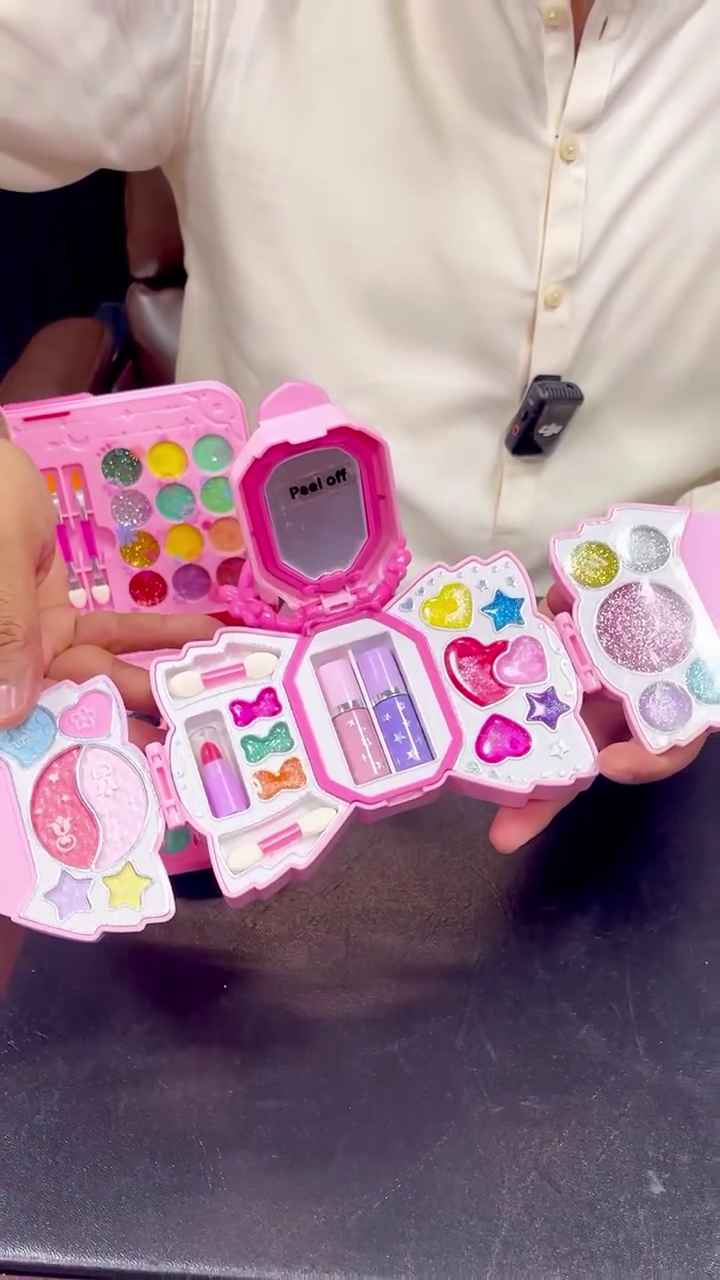Designed in a compact foldable storage box, this makeup kit is lightweight and travel-friendly. Kids can carry it anywhere—on vacations, to friends’ houses, or to family gatherings. The organized layout keeps everything in place and prevents mess.