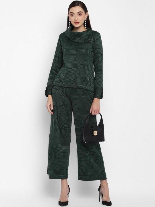 This dark green women’s co-ord set is incredibly versatile. Wear it as a complete outfit for a bold, elegant statement, or mix and match the pieces with other wardrobe essentials. Pair the top with tailored trousers or skirts for office-ready looks, or style the pants with blouses, knits, or structured jackets for varied ensembles. The rich green shade adds a touch of luxury and sophistication, making it a standout alternative to classic neutrals.