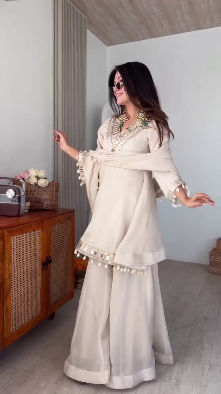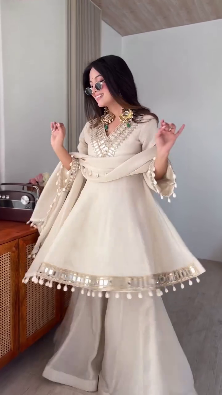Perfect for festive gatherings, engagement functions, family celebrations, and cultural events, this beige sharara suit set offers a refined alternative to brighter tones while still delivering impact. Comfortable, breathable, and visually graceful, it is ideal for women who want a classy ethnic look with contemporary appeal. This sharara outfit is a go-to choice for effortless elegance and celebration-ready style.