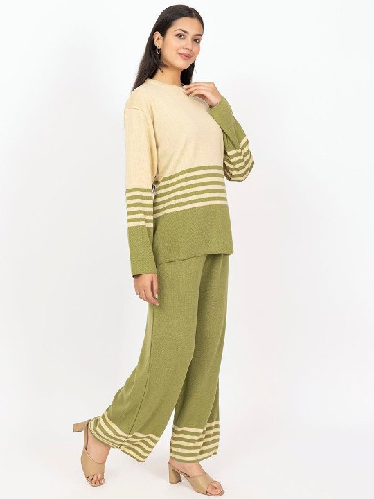 Women’s Olive Green & Beige Knit Co-Ord Set